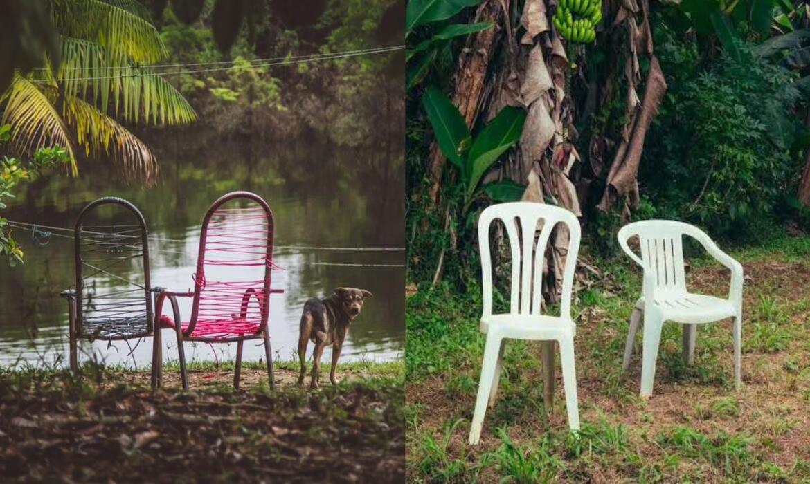 Manaus (AM) – Em visita a Reserva de Desenvolvimento Sustentável do Tupé, em Manaus, no ano de 2021, a fotógrafa amazonense Nathalie Brasil registrou duas cadeiras de ‘macarrão’ e um vira-lata caramelo às margens do rio Negro.