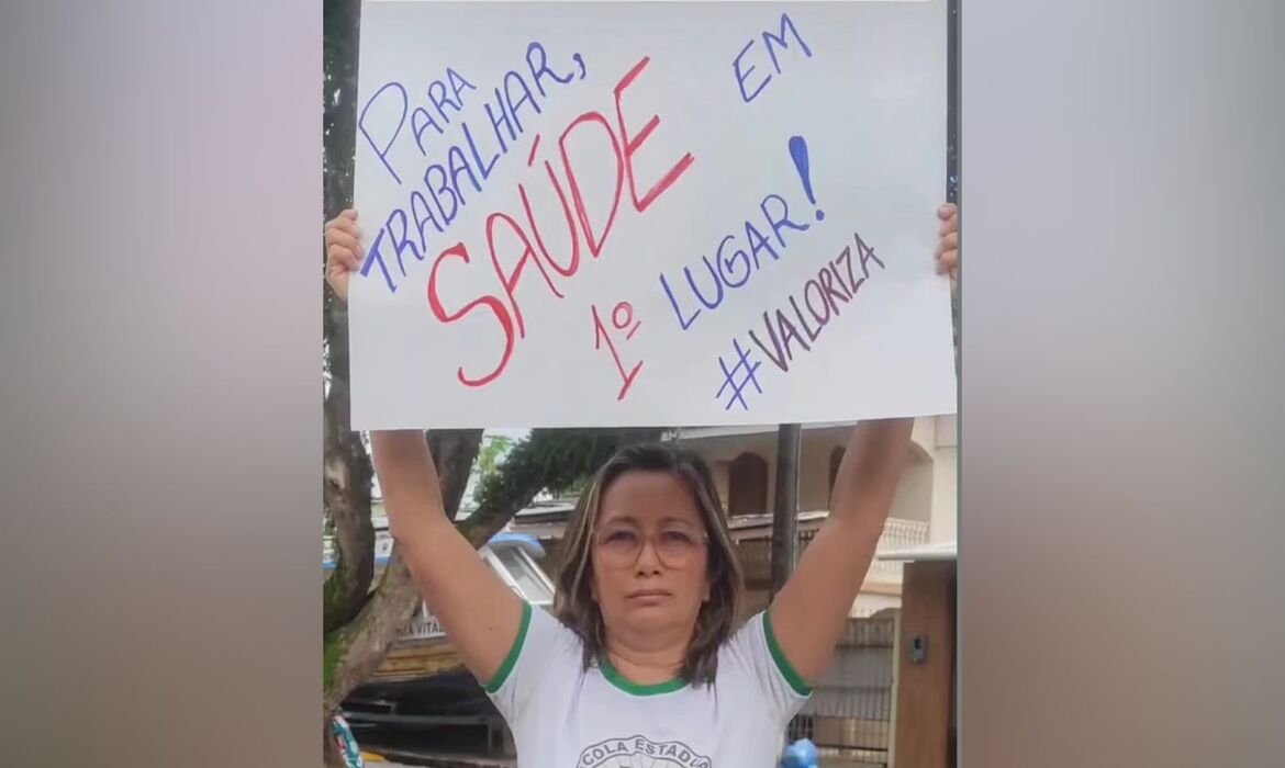 Manaus (AM) – O governador interino do Amazonas, Roberto Cidade, foi recebido com protesto por professores da rede estadual na manhã desta segunda-feira (6/4), em frente à sede do Governo do Estado, em Manaus.