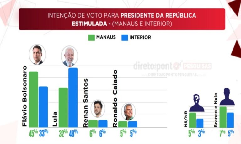 A pesquisa detalhou a percepção do eleitorado em municípios estratégicos como Autazes, Manacapuru, Tefé e Humaitá, revelando que a corrida está “fria” no voto espontâneo: 77% dos entrevistados ainda não sabem em quem votar ou não responderam quando nenhum nome é apresentado.
